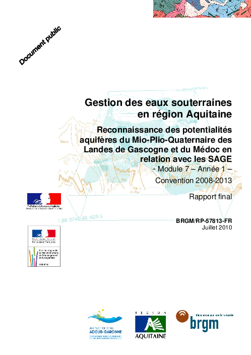 Gestion des eaux souterraines en Région Aquitaine. Reconnaissance des potentialités aquifères du Mio-Plio-Quaternaire des Landes de Gascogne et du Médoc en relation avec les SAGE -Module 7 - Année 1