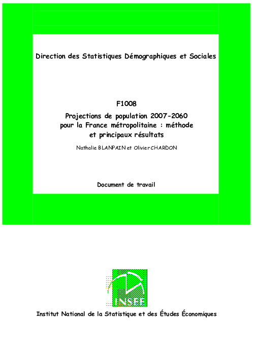 Projections de population 2007-2060 pour la France métropolitaine : méthode et principaux résultats.