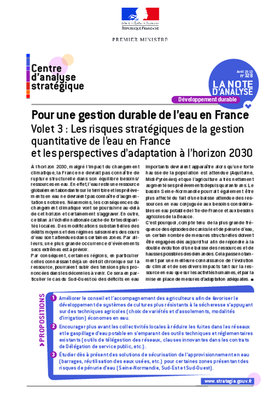 Ressources et besoins en eau en France à l'horizon 2030