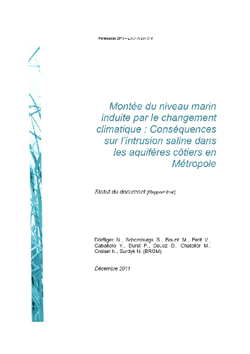 Montée du niveau marin induite par le changement climatique : Conséquences sur l'intrusion saline dans les aquifères côtiers en Métropole. Rapport final