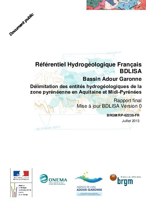 Délimitation des entités hydrogéologiques de la zone pyrénéenne en Aquitaine et Midi-Pyrénées. Rapport final Mise à jour BDLISA Version 0