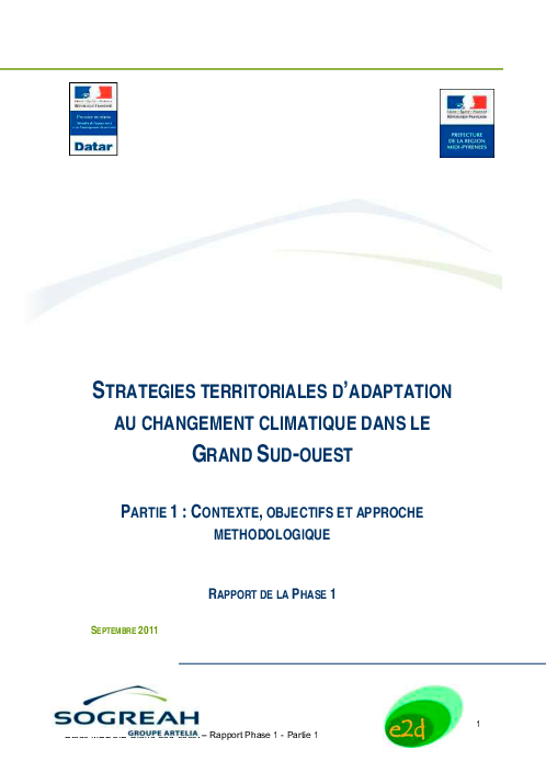 Il s'agit d'une étude, portant, au niveau interrégional, sur « les stratégies d'adaptation territoriale au changement climatique » pour l'ensemble des quatre régions Midi-Pyrénées, Aquitaine, Poitou-Charentes et Limousin."