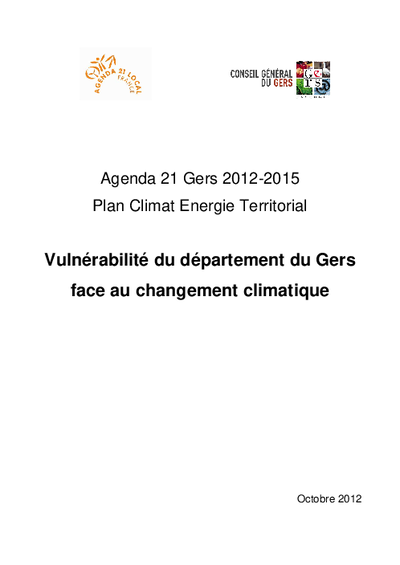 Département du Gers - Vulnérabilité du département face au changement climatique (Agenda 21 Gers 2012 - 2015 - Plan Climat Energie Territorial)