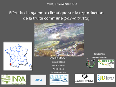 Ce document présente une partie de travaux de thèse sur la truite et sa reproduction , en axant sur limpact du changement climatique sur l'animal.