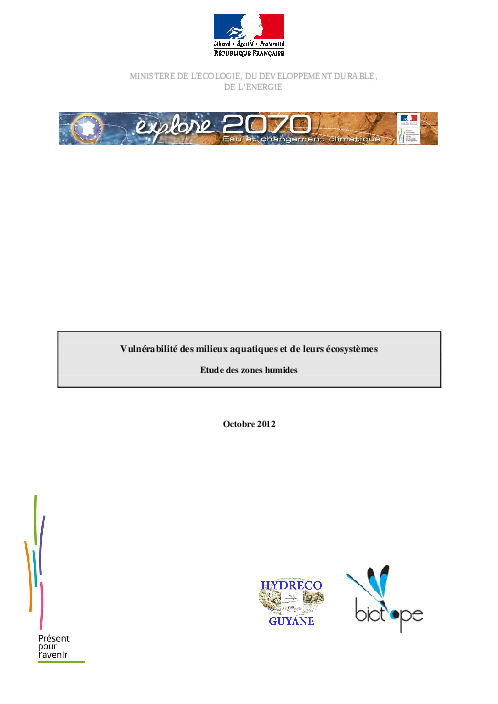 Explore 2070 : Vulnérabilité des milieux aquatiques et de leurs écosystèmes : Etude des zones humides