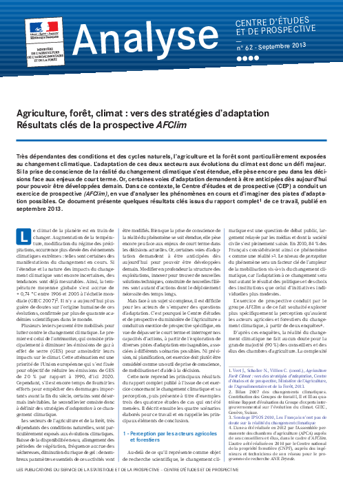 AFClim - Agriculture, forêt, climat : vers des stratégies d'adaptation - Résultats clés de la prospective