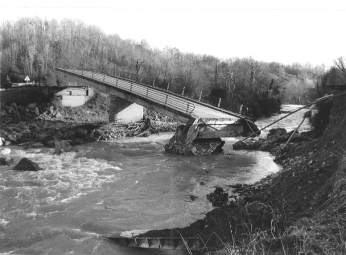 Dans la nuit du 19 au 20 décembre 1980, une crue exceptionnelle de l’Ouzom déclencha, à l’aval immédiat du pont, une forte érosion régressive de la rive gauche (côté Asson) qui provoqua l’affaissement de la culée sur cette même rive, et le basculement du pont.