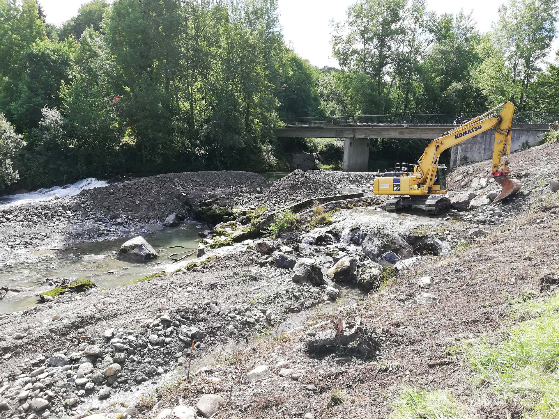 Pendant la durée du chantier, l’Ouzom a été dérivé à l’aide de batardeaux, afin de travailler dans une zone protégée et à sec.