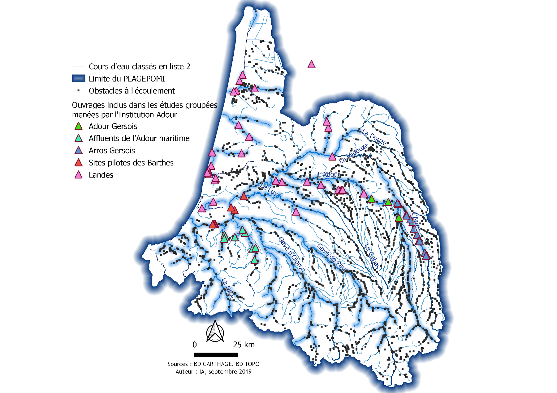 Cette étude a concerné 35 ouvrages repartis dans les Landes sur l’Adour, ses affluents et les côtiers landais. Menée de 2011 à 2014, elle avait été confiée, sur marché public, au bureau d’études Ecogea.