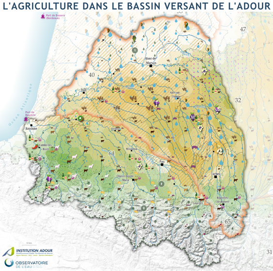 Une présentation de l'eau dans le bassin de l'Adour sous forme de cartes a été mise à jour sur le site internet de l'Institution Adour. Le territoire, les ressources en eau, leurs usages et leur gestion y sont présentés à l'aide de différentes cartes et graphiques.