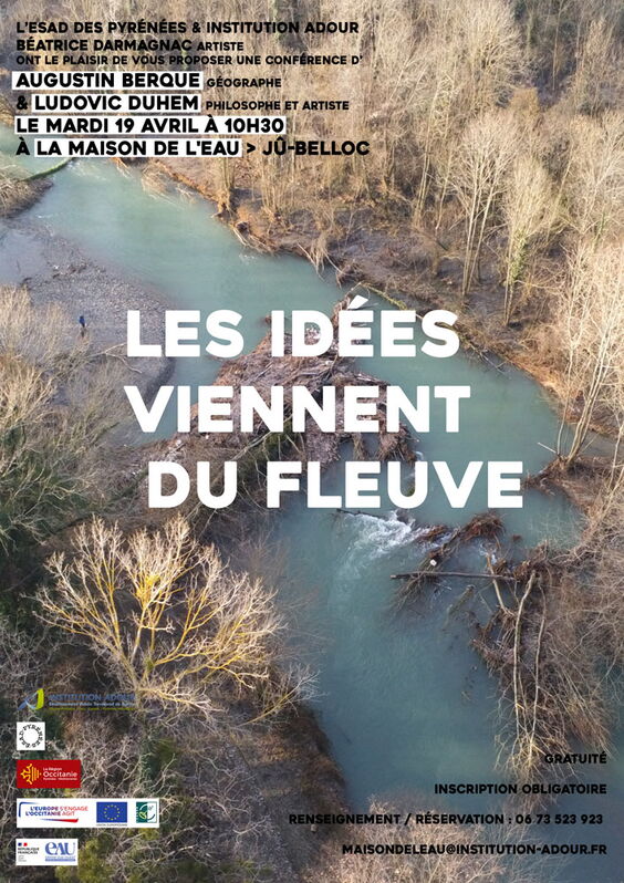 L'École supérieure d'art et de design des Pyrénées Tarbes (ESAD), la Maison de l'eau (Institution Adour), Béatrice Darmagnac (artiste) vous invitent à la conférence d'Augustin Berque (géographe) avec nous en visioconférence et Ludovic Duhem (philosophe et artiste)