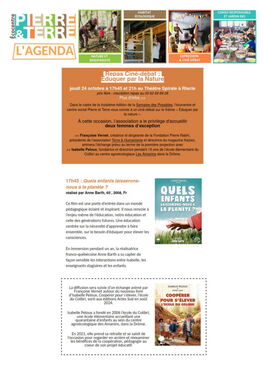 Notez également que le jeudi 24 octobre, toujours dans le cadre de La Semaine est proposée à Pierre&Terre une soirée "ciné-débat" autour des questions d'éduquer par la nature.