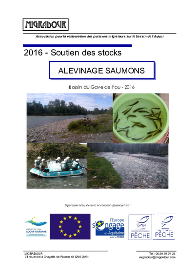 Soutien des stocks - Alevinage saumons - Bassin du Gave de Pau - 2016