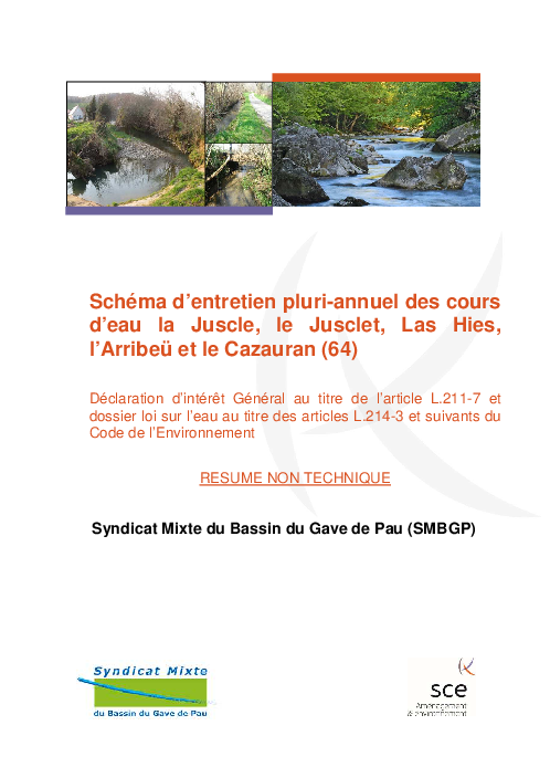 Schéma d'entretien pluriannuel des cours d'eau la Juscle, le Jusclet, Las Hies, l'Arribeü et le Cazauran (64) - DIG et dossier Loi sur l'eau - Résumé non technique.