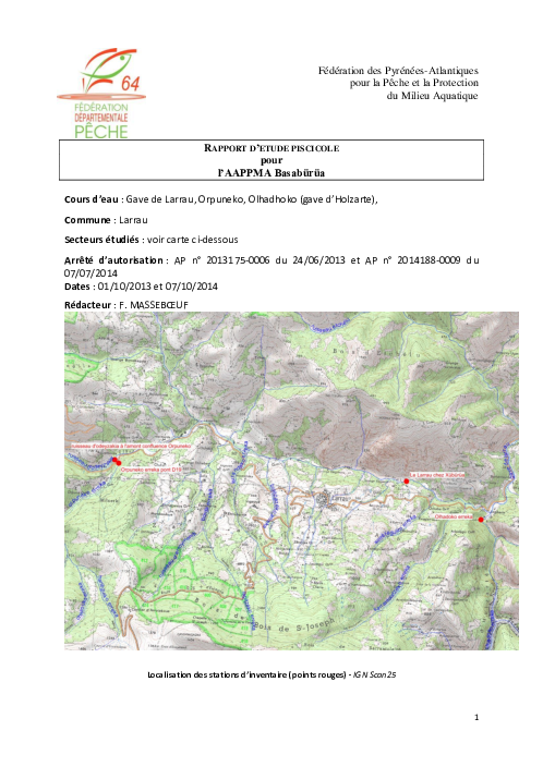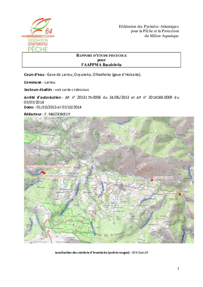 Rapport d'étude piscicole pour l'AAPPMA Batsuburua.