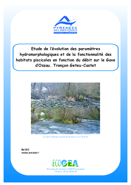 Etude de l'évolution des paramètres hydromorphologiques et de la fonctionnalité des habitats piscicoles en fonction du débit sur le Gave d'Ossau. Tronçon Geteu-Castet
