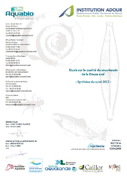 Etude sur la qualité du sous bassin de la Douze aval - Synthèse du suivi 2017