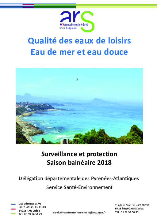 Qualité des eaux de loisirs - Eau de mer et eau douce - Surveillance et protection - Saison balnéaire 2018 - Pyrénées Atlantiques
