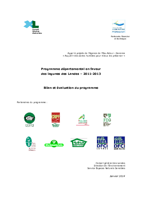 Programme départemental en faveur des lagunes des Landes - 2011-2013 - Bilan et évaluation du programme.