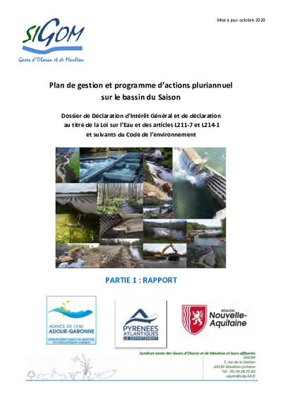 Plan de gestion et programmes d'actions pluriannuels sur le Gave d'Oloron et le bassin du Saison - Partie 1 - Le Saison - Dossier de Déclaration d'Intérêt Général et Annexes