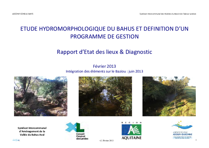 Etude hydromorphologique du Bahus et définition d'un programme de gestion - Rapport d'état des lieux et diagnostic.