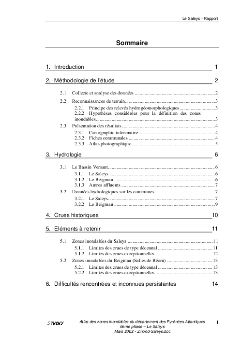 Atlas des zones inondables du département des Pyrénées-Atlantiques - 6ème phase - Saleys et affluents