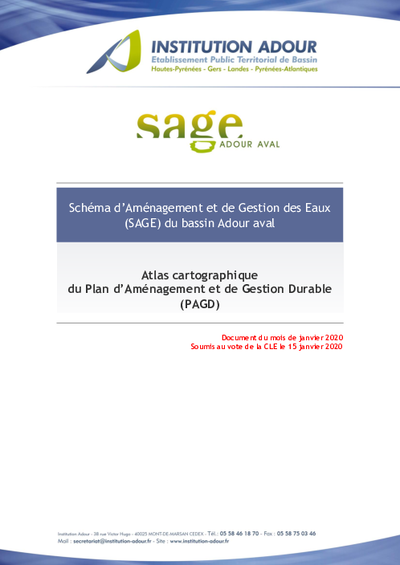 Schéma d'Aménagement et de Gestion des Eaux (SAGE) du bassin Adour aval - Atlas cartographique du Plan d'Aménagement et de Gestion Durable (PAGD)