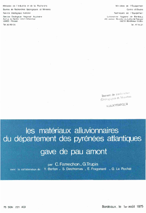 L'étude évalue les réserves en matériaux alluvionnaires de la vallée du Gave de Pau entre Lestelle-Bétharram et Maslacq, afin de répondre aux besoins en granulats de la région paloise entre 1975 et 1985. Elle estime les réserves disponibles à 360 Mm3, pour des besoins de 11 Mm3 pour la période considérée.