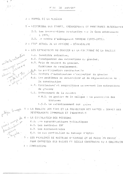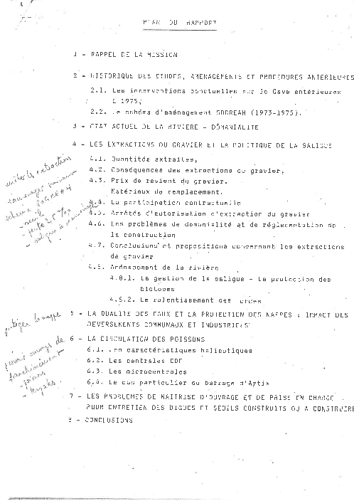 Ce rapport de l'Inspection Générale de l'Equipement et de l'Environnement porte sur des propositions d'aménagement du Gave de Pau entre Bétharram et Orthez. Le contexte est une destabilisation du lit et une érosion suite à un fort développement de l'extraction de granulats en lit mineur (forte demande due à la construction de l'A64). Il fait l'historique de l'aménagement du Gave, émet un avis sur le Schéma SOGREAH de 1975 et analyse l'impact sur les milieux et l'activité économique.