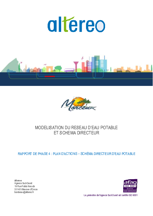 Mots clés : alimentation en eau potable, diagnostic, qualité de l'eau, réseau, schéma directeur, traitement