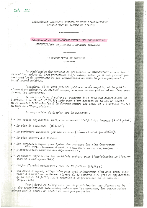 Protection de MAUBOURGUET contre les inondations. Avant projet détaillé. Etude d'impact.