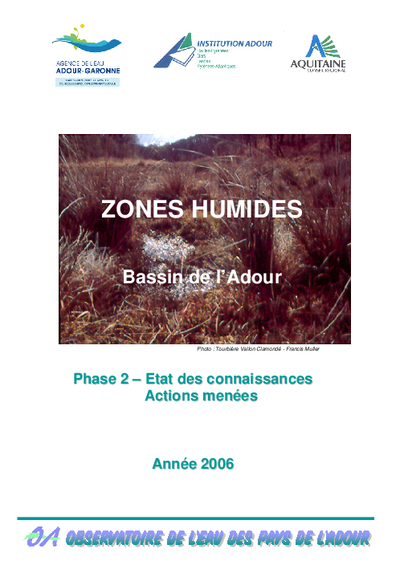 Zones humides. Bassin de l'Adour. Phase 2 : Etat des connaissances. Actions menées. Situation 2006.