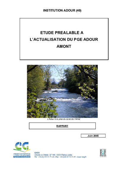 Cette étude préliminaire à l'actualisation du PGE Adour amont a pour objectif de connaître les déficits en eau sur le territoire du PGE. Elle s'appuie sur l'étude préliminaire de 2002 qui portait sur la partie en amont d'Estirac, qu'elle actualise et prolonge sur la partie Estirac-Aire. Elle s'appuie sur le logiciel LAGON pour établir le bilan besoins-ressources.