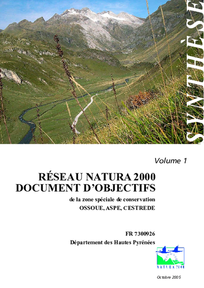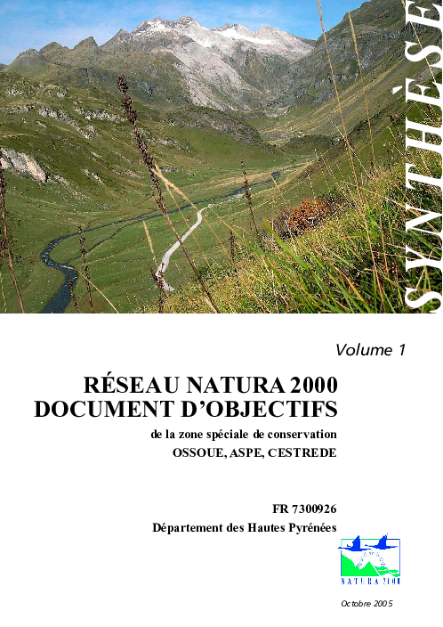 Réseau Natural 2000. DOCOB de la ZPS Ossoue, Aspe, Cestrede.
