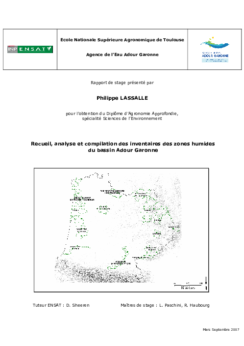 Recueil, analyse et compilation des inventaires des zones humides du BASSIN ADOUR-GARONNE.