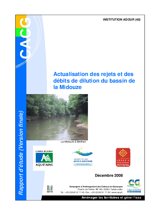 Actualisation des rejets et des débits de dilution du bassin de la Midouze.
