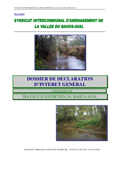 Dossier de DIG concernant les travaux d'entretien du Bahus aval.