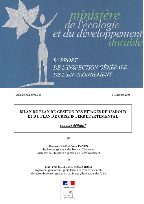 Bilan du Plan de Gestion des Etiages de l'Adour et du plan de crise interdépartemental. Rapport de l'IGE (Inspection Générale de l'Environnement).
