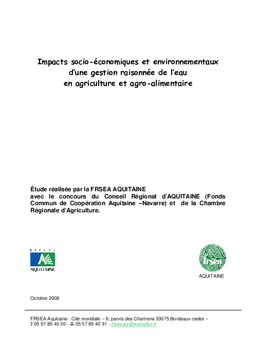 Impacts socio-économiques et environnementaux d'une gestion raisonnée de l'eau en agriculture et agro-alimentaire.