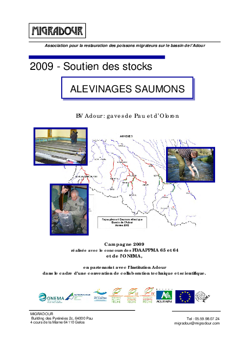 Alevinages saumons. Bassin-versant : Gaves de Pau et Gave d'Oloron. Campagne 2009.