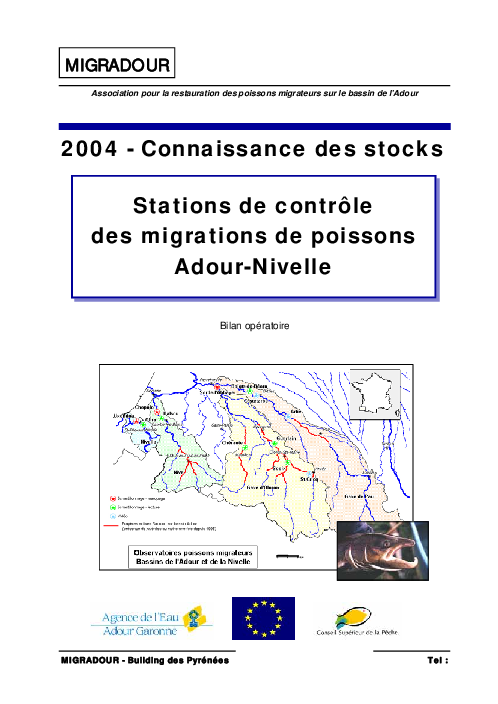 Le dispositif de contrôle des migrations mis en place sur les bassins de l'Adour et de la Nivelle est composé de 9 stations situées sur trois grands systèmes : Nivelle, Nive et Adour. Les stations les plus en aval sont utilisées pour marquer des géniteurs. Les stations amont servent à collecter les informations complémentaires pour quantifier les stocks. Le contrôle se fait par piégeage ou comptage vidéo. L'estimation des stocks migrants n'est possible que pour le saumon et la truite de mer sur laquelle est appliquée une technique statistique de marquage-recapture.
