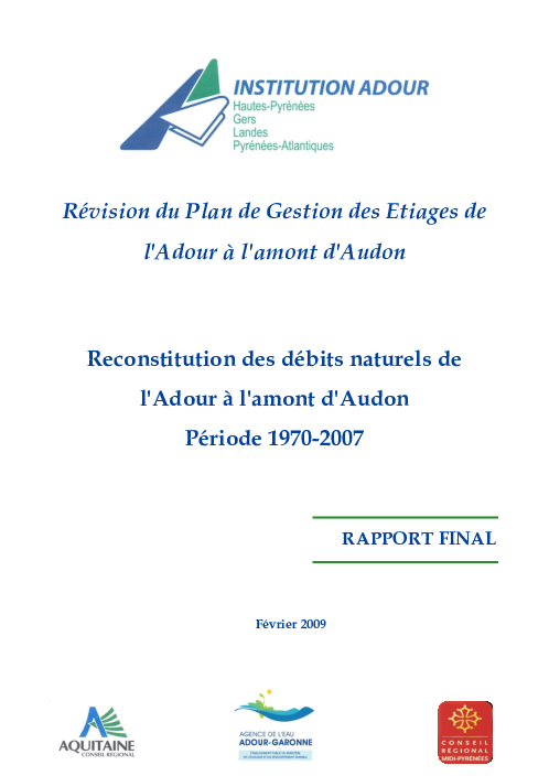 Reconstitution des débits naturels de l'Adour à l'amont d'Audon. Période 1970-2007. Rapport final.