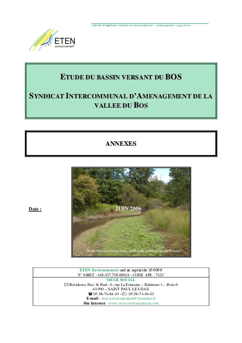 Etude du bassin-versant du Bos. Rapport