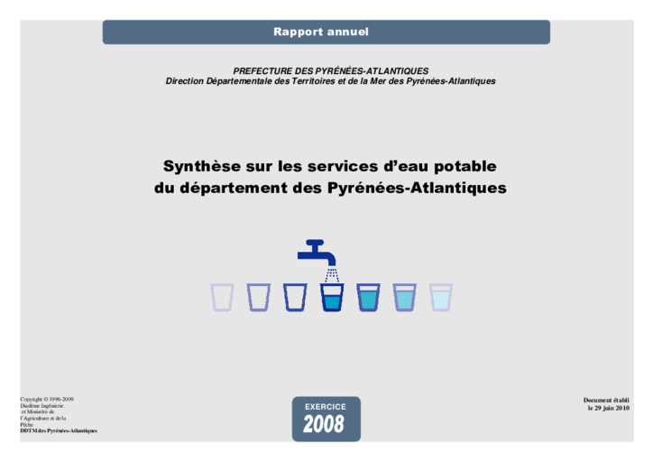 Synthèse sur les services d'eau potable du département des Pyrénées-atlantiques. Exercice 2008.