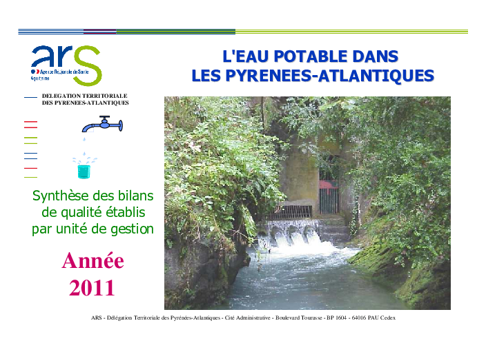 L'eau potable dans les Pyrénées-Atlantiques. Année 2011. Synthèse des bilans de qualité établis par unité de gestion.