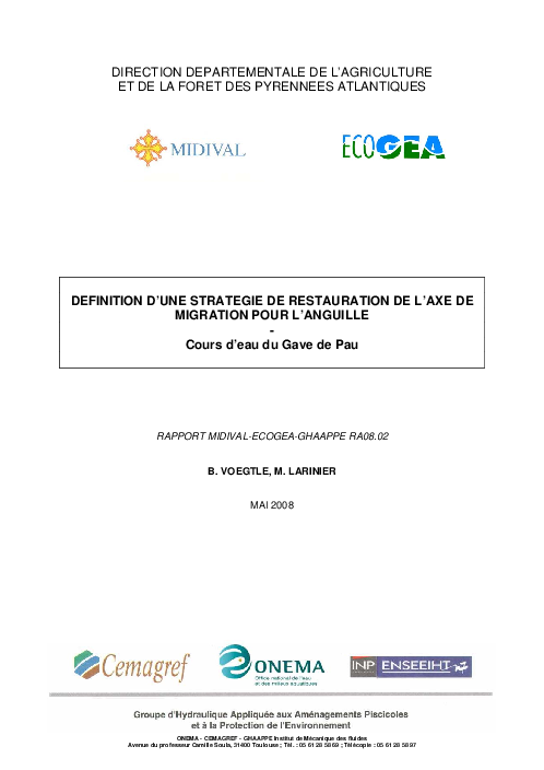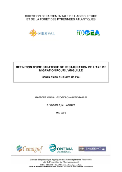 Définition d'une stratégie de restauration de l'axe de migration pour l'anguille. Cours d'eau du Gave de Pau.
