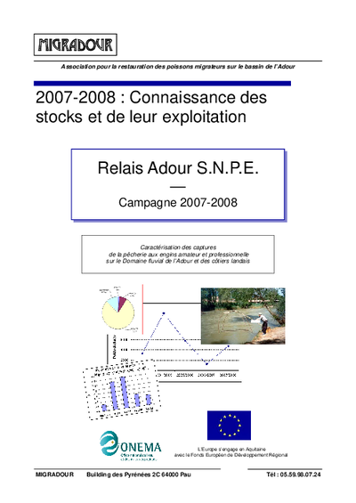 Relais Adour SNPE. Campagne 2007-2008. Caractérisation des captures de la pêcherie aux engins amateur et professionnelle sur le domaine public fluvial de l'Adour et des côtiers landais.