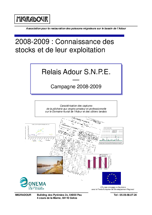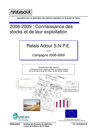 Relais Adour SNPE. Campagne 2008-2009. Caractérisation des captures de la pêcherie aux engins amateur et professionnelle sur le domaine public fluvial de l'Adour et des côtiers landais.