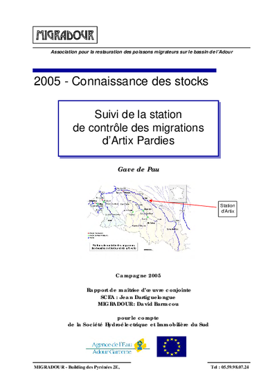 Suivi de la station de contrôle des migrations d'Artix-Pardies. Gave de Pau. Campagne 2005.