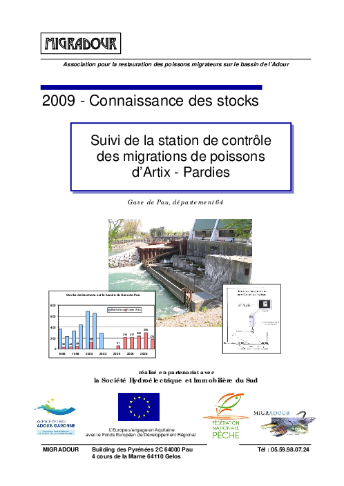 Suivi de la station de contrôle des migrations d'Artix-Pardies. Gave de Pau. Campagne 2009.